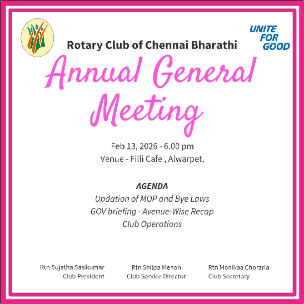 Rotary Club of Chennai Bharathi had their AGM on the 13th February.. . .